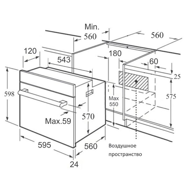 Размеры встраивания, (ВхШхГ), (мм): 600х560х560